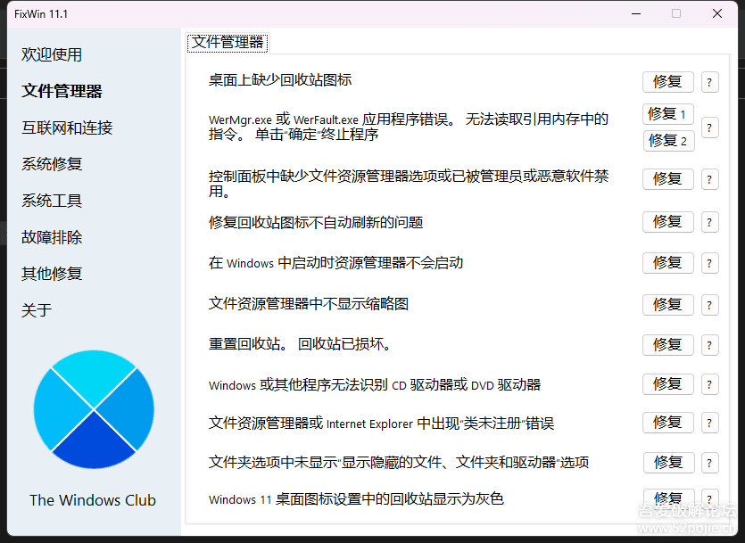Windows 11,10系统工具,针对常见 Windows 问题的修复