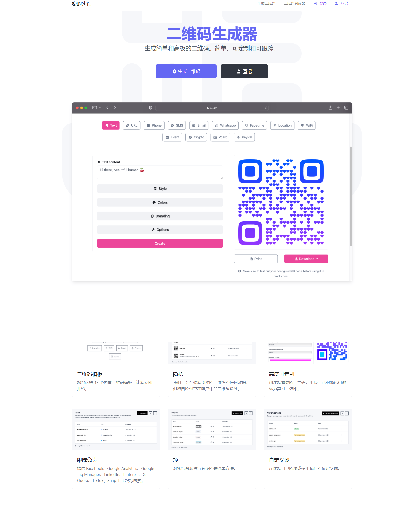 多套二维码模板,强大的二维码生成器,动态二维码链接,高级码统计