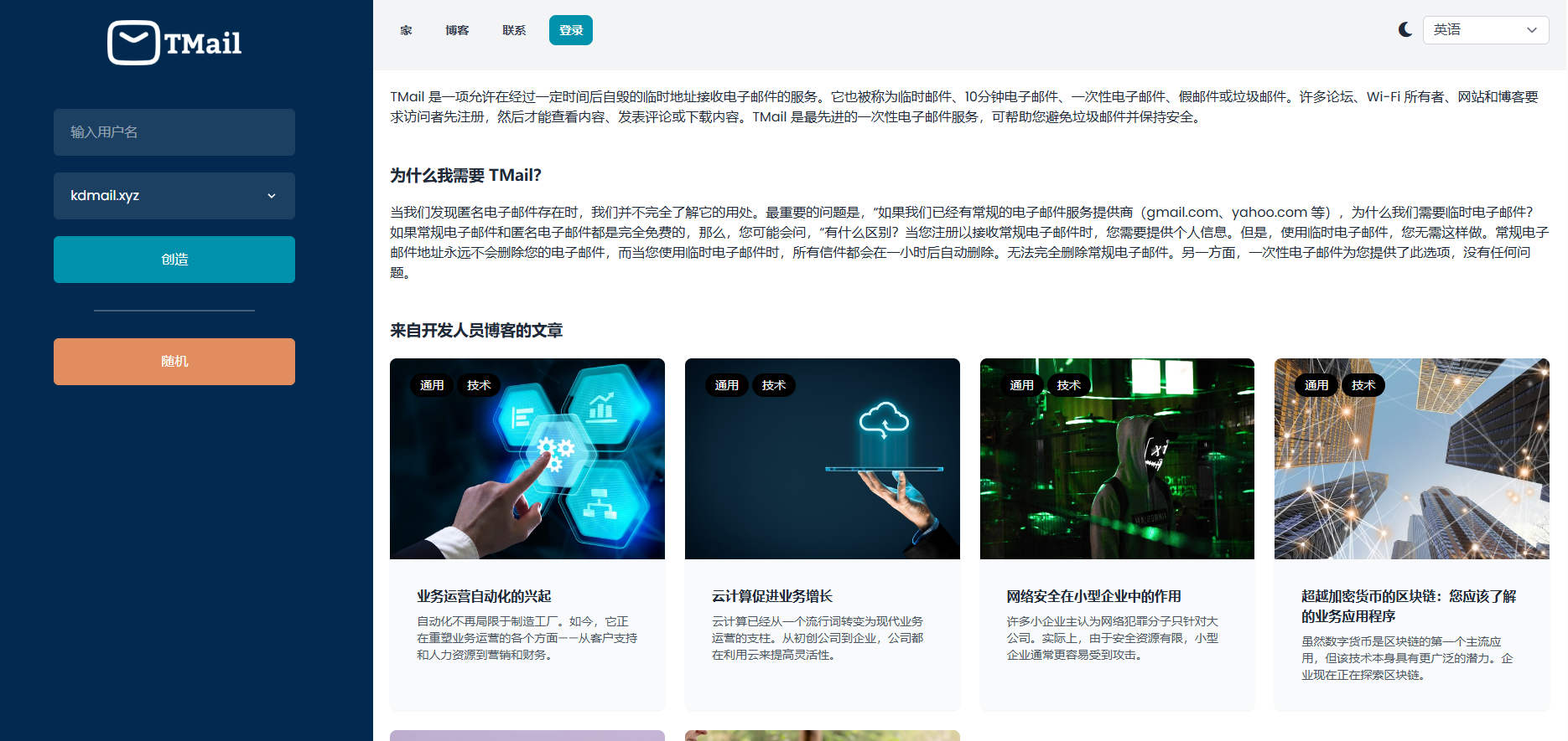 临时电子邮件系统,支持增加多个域名,经典且永不过时的设计,搭配优雅的字体排版,非常适合专业电子邮件服务