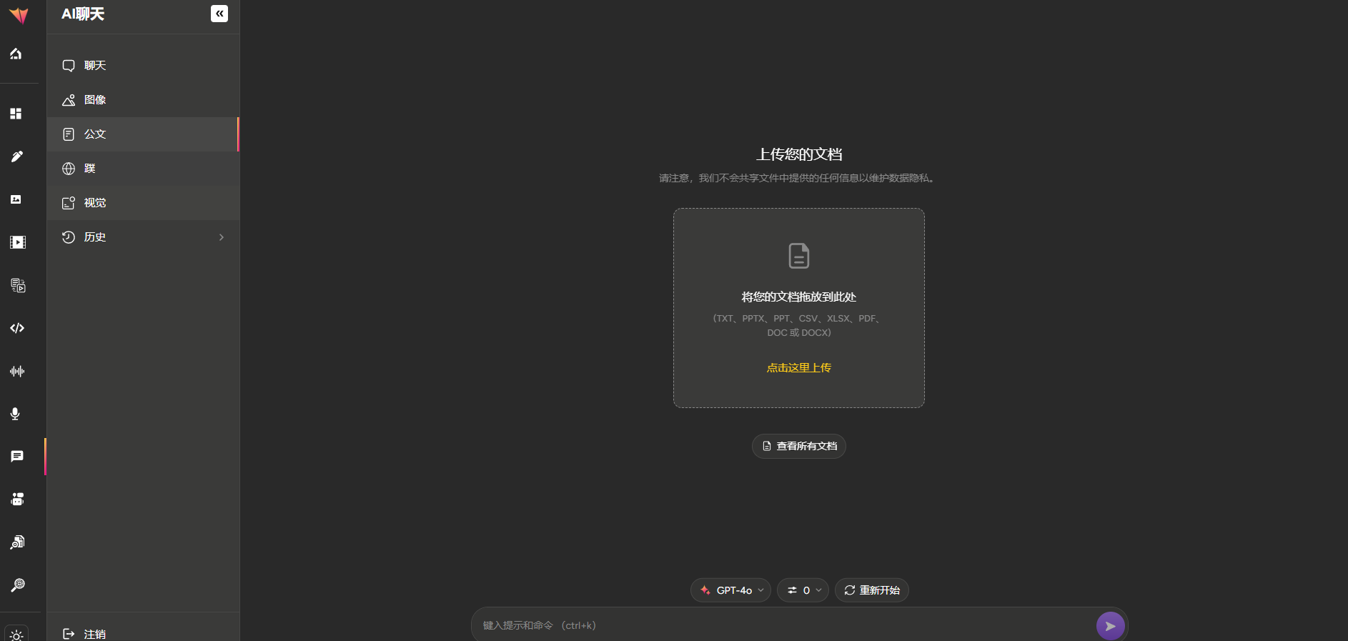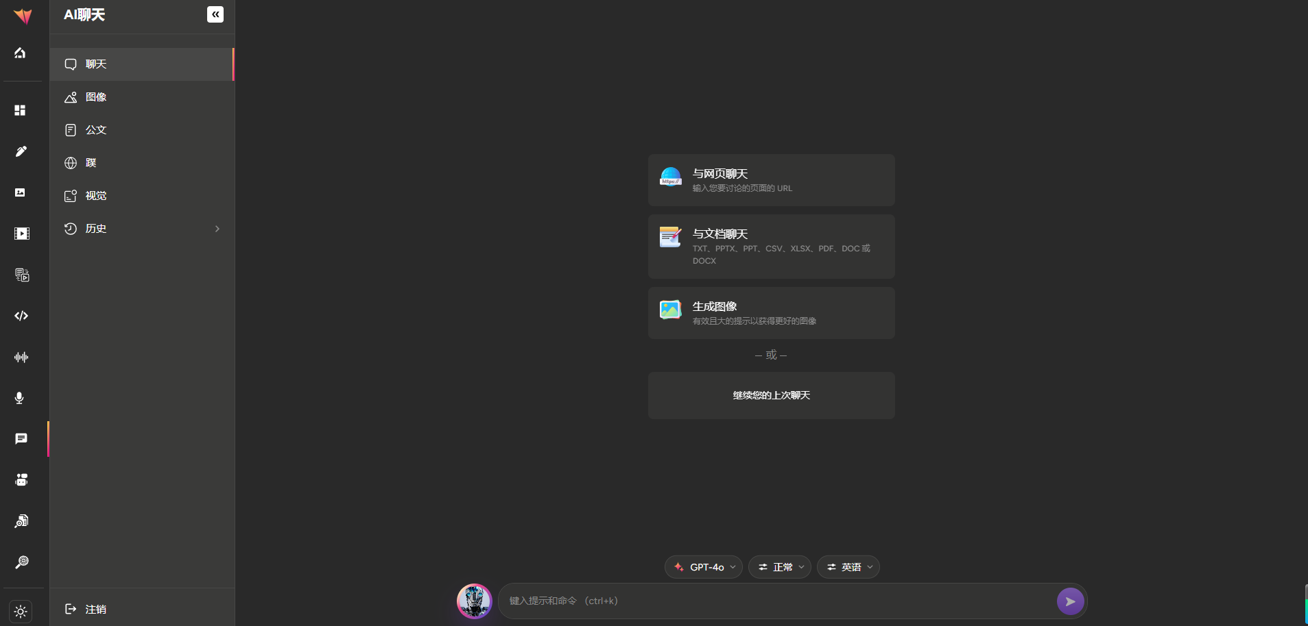 提供商以支持各种功能,包括模板、代码、长文、基本聊天、文档聊天、网络聊天、视觉聊天和外部聊天机器人功能。