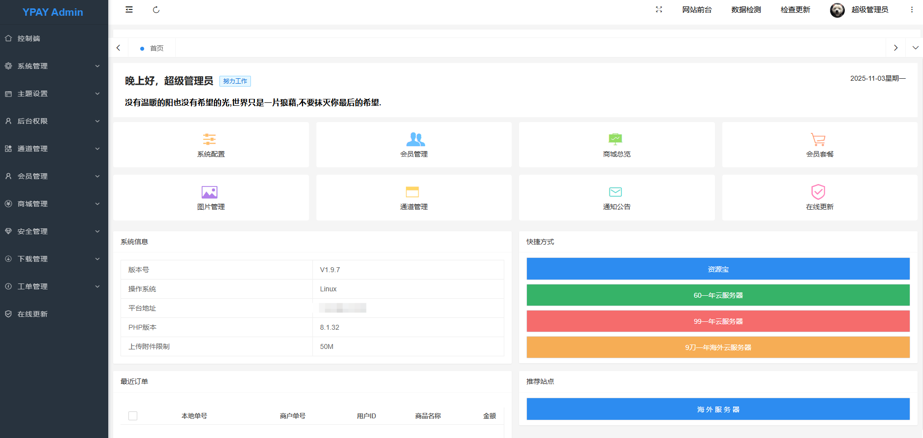 它基于高性能的ThinkPHP V8.1.2 + Layui2.9.21 + PearAdmin架构,提供实时监控和管理功能,让您随时随地掌握系统运营情况