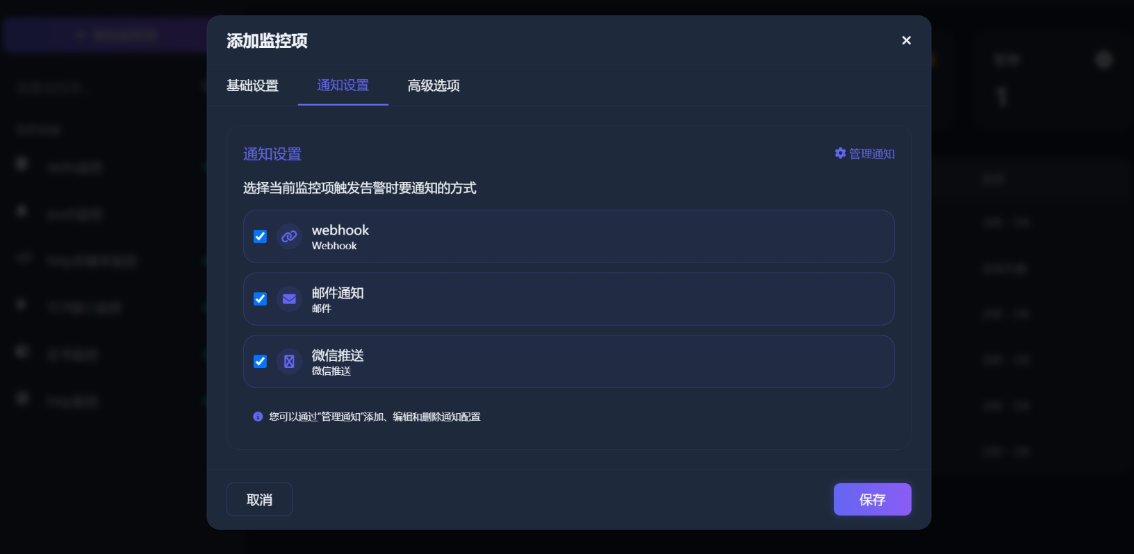 强大通知系统:支持邮件、Webhook、微信通知渠道等多种通知方式