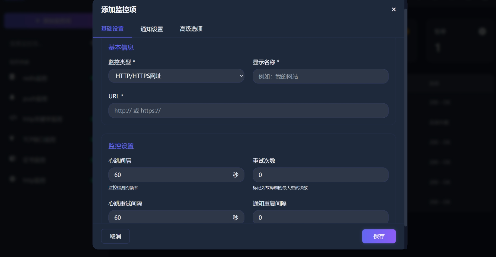 支持网站监控/接口监控/HTTPS证书监控等多种监控类型,帮助开发者及运维人员实时掌握网站/接口运行状态,拥有美观现代的界面设计。