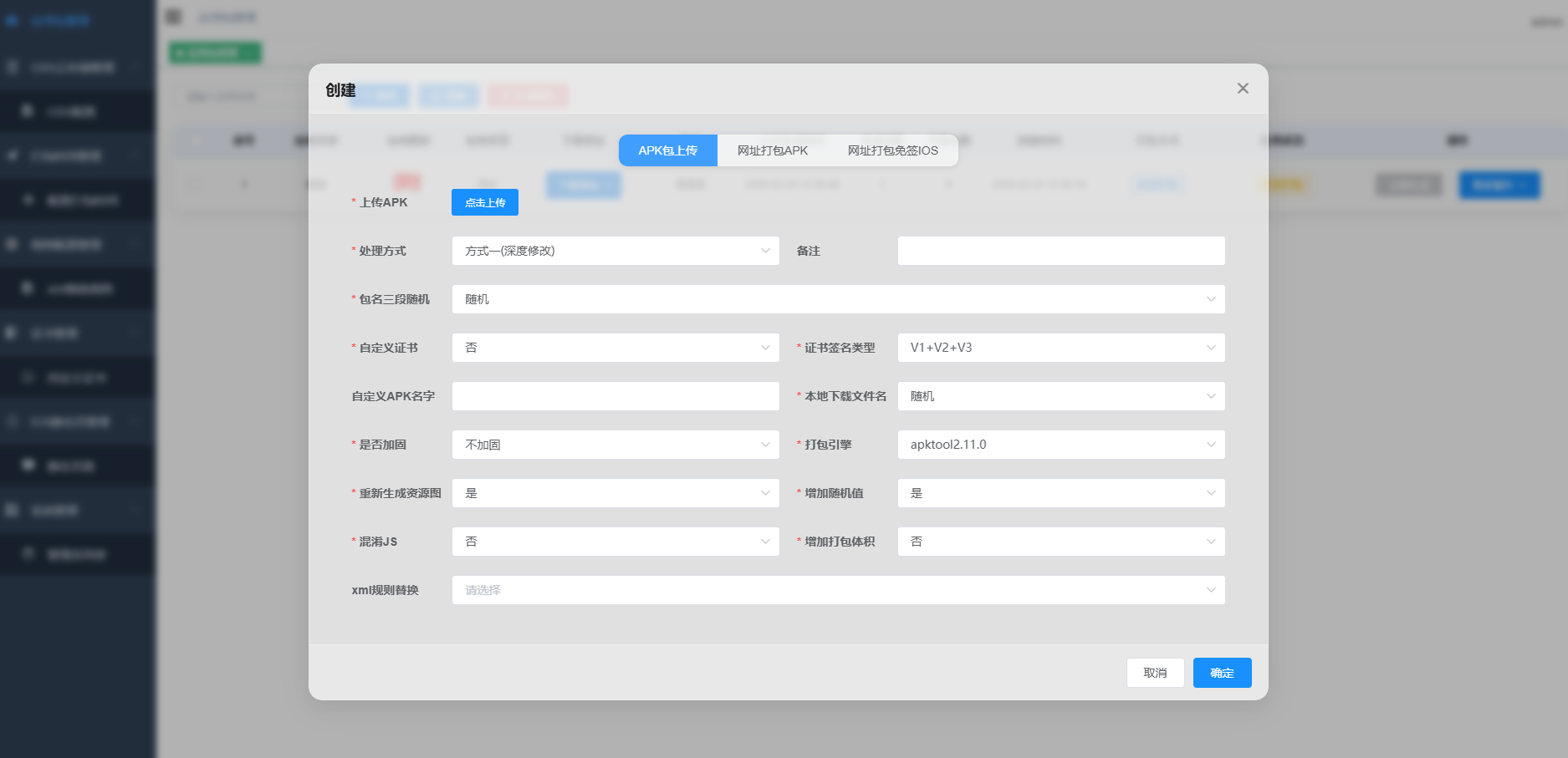 支持上传APK免杀处理,网址在线打包,安卓苹果在线打包