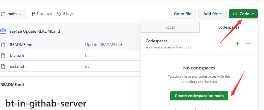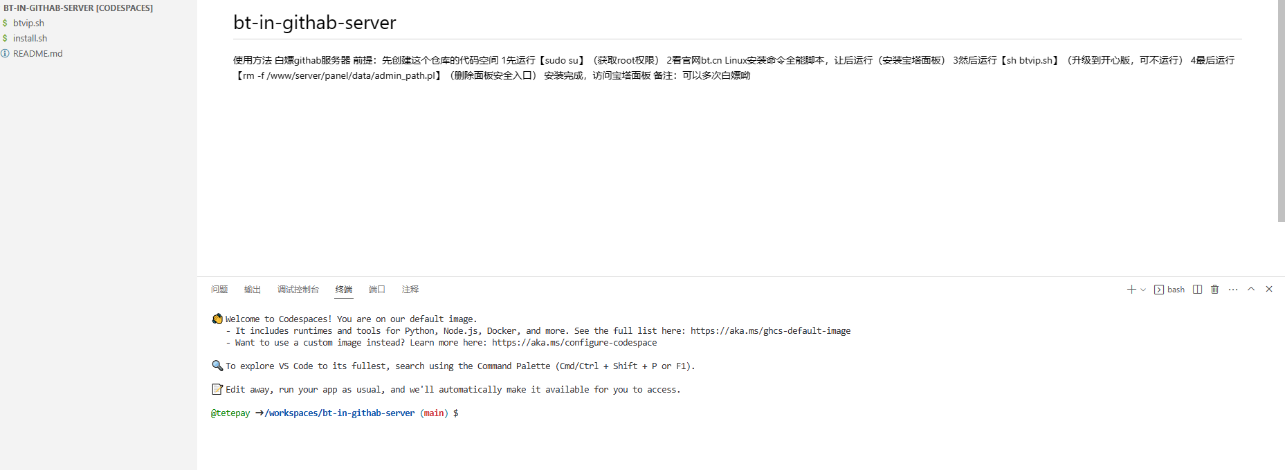 使用方法 白嫖githab服务器 前提:先创建这个仓库的代码空间